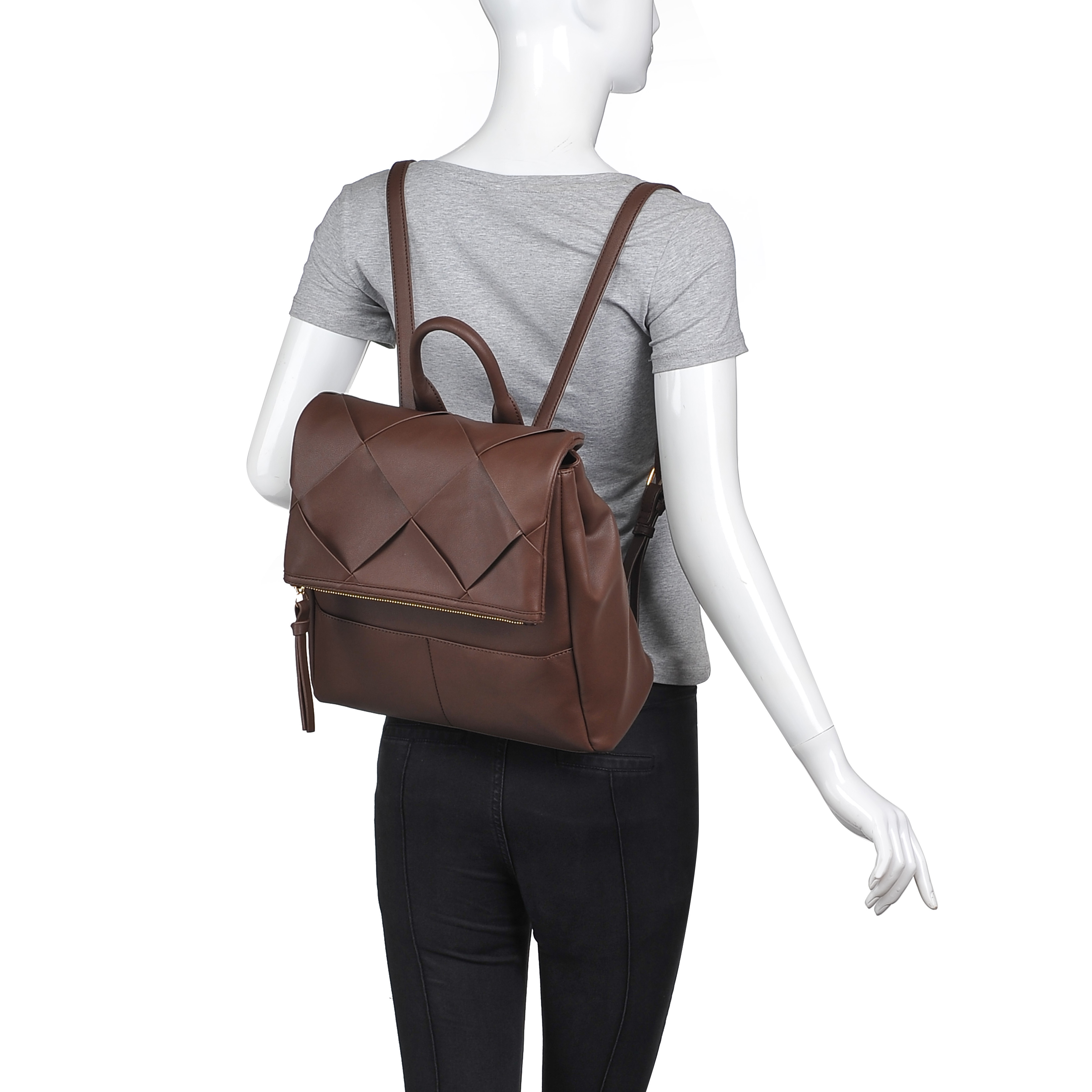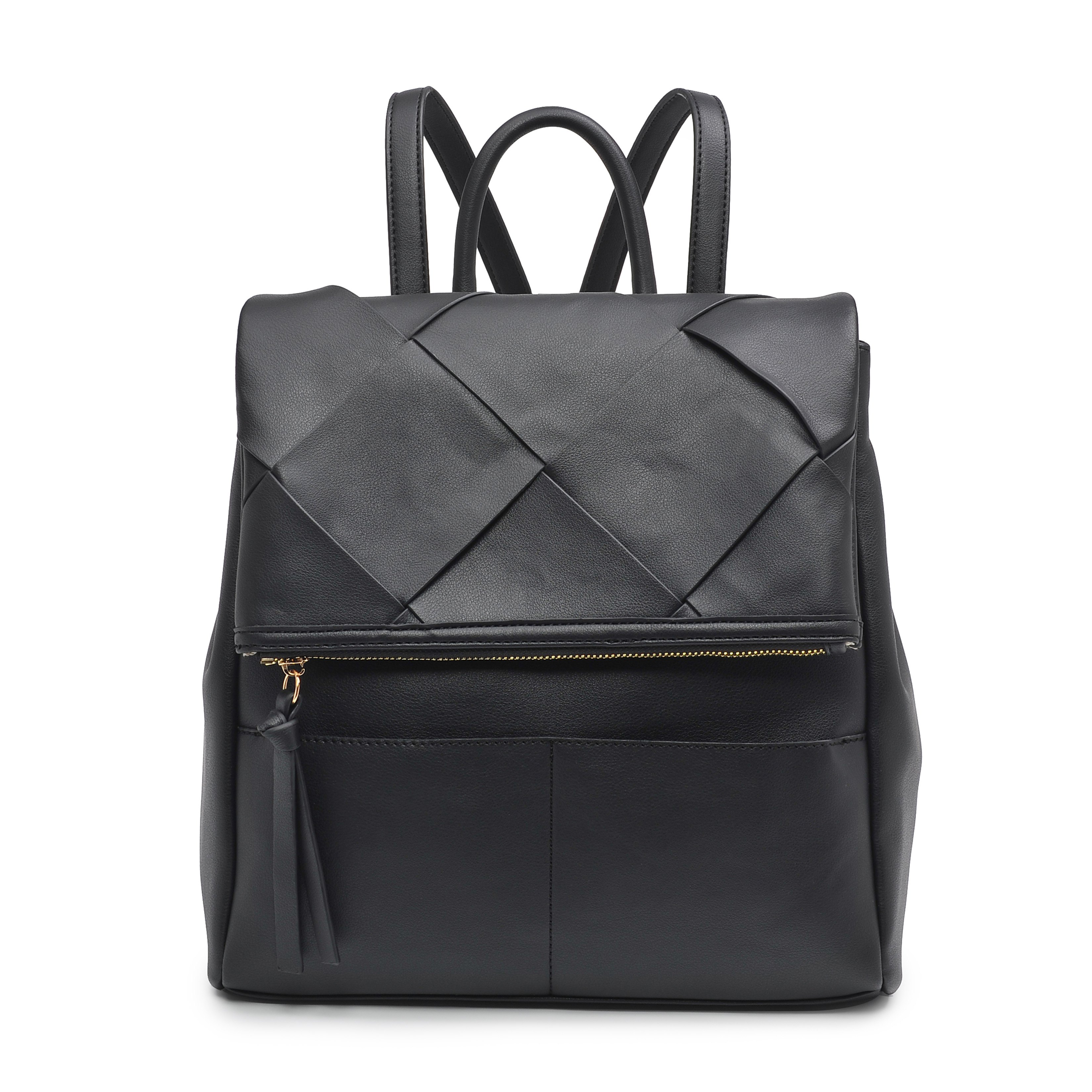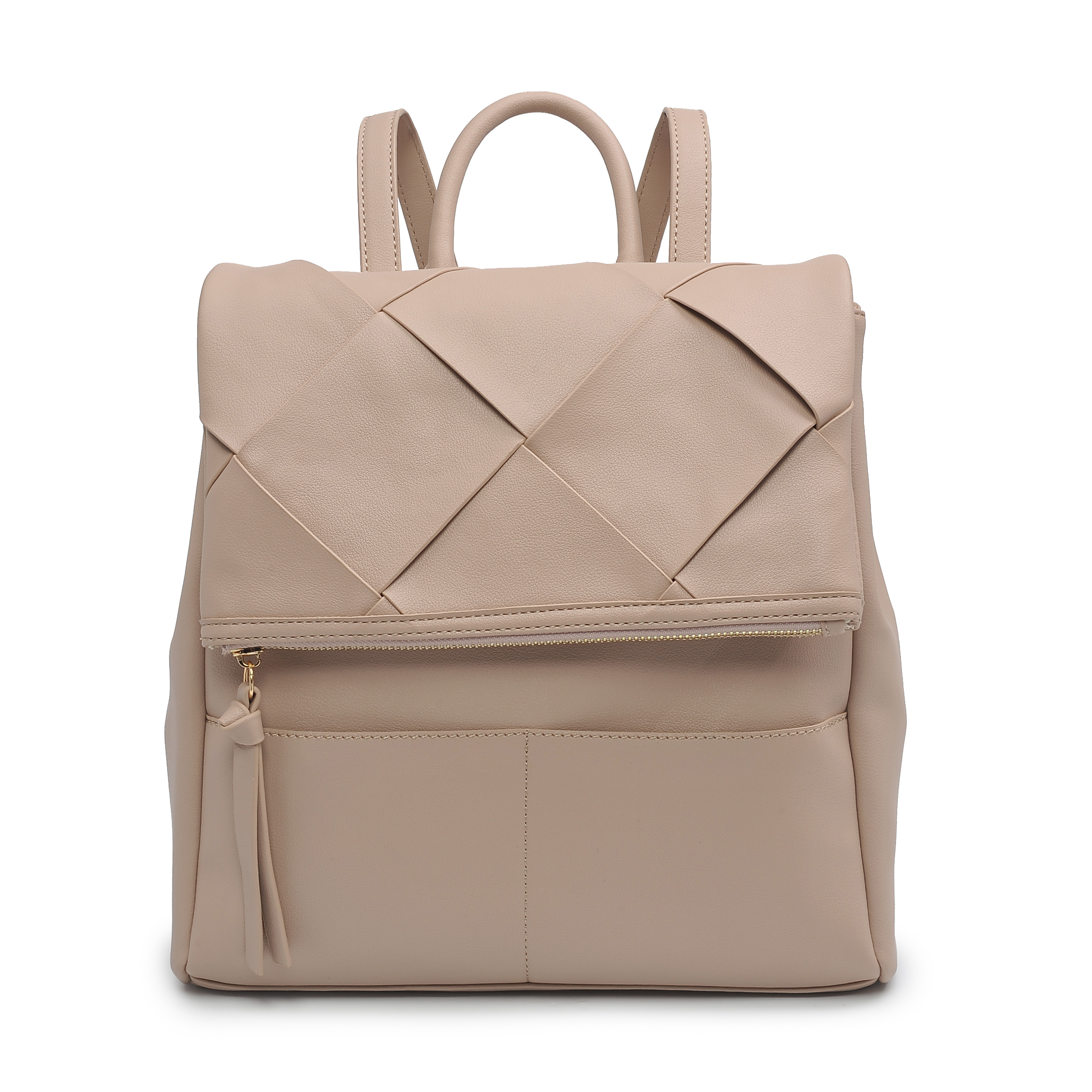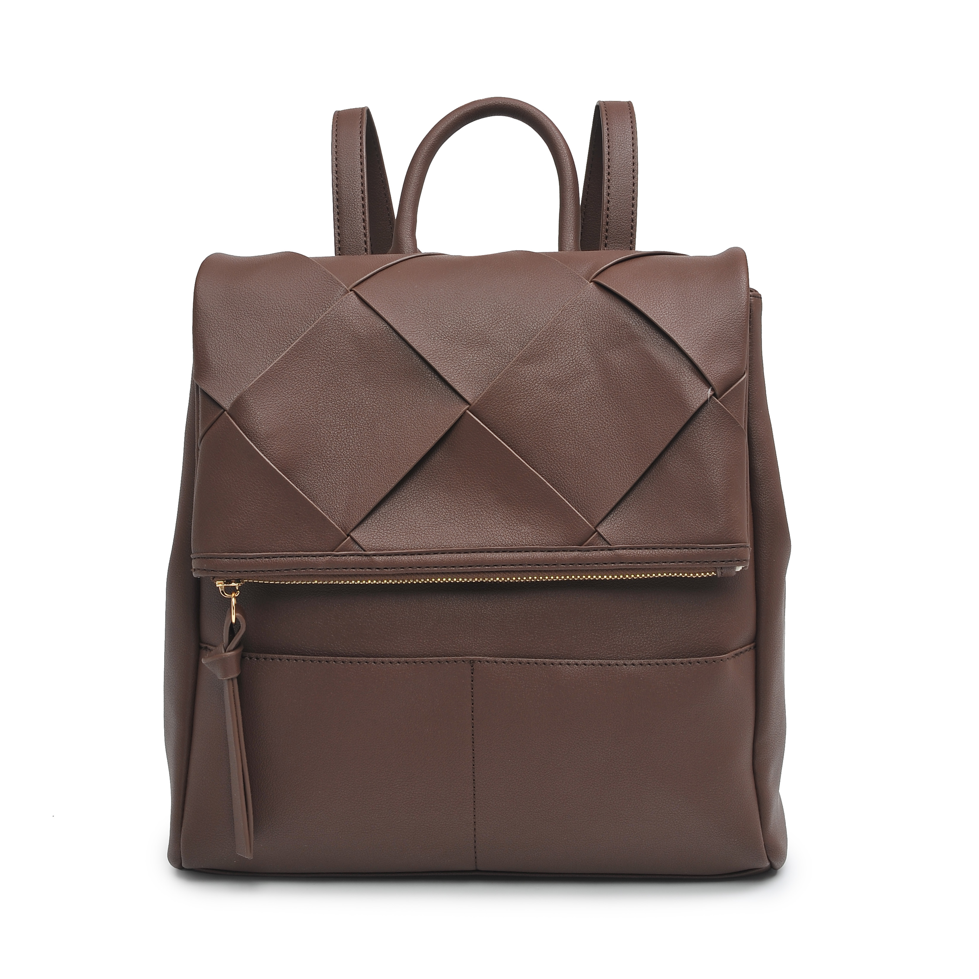 Details:Woven flap and with two pockets at the front part