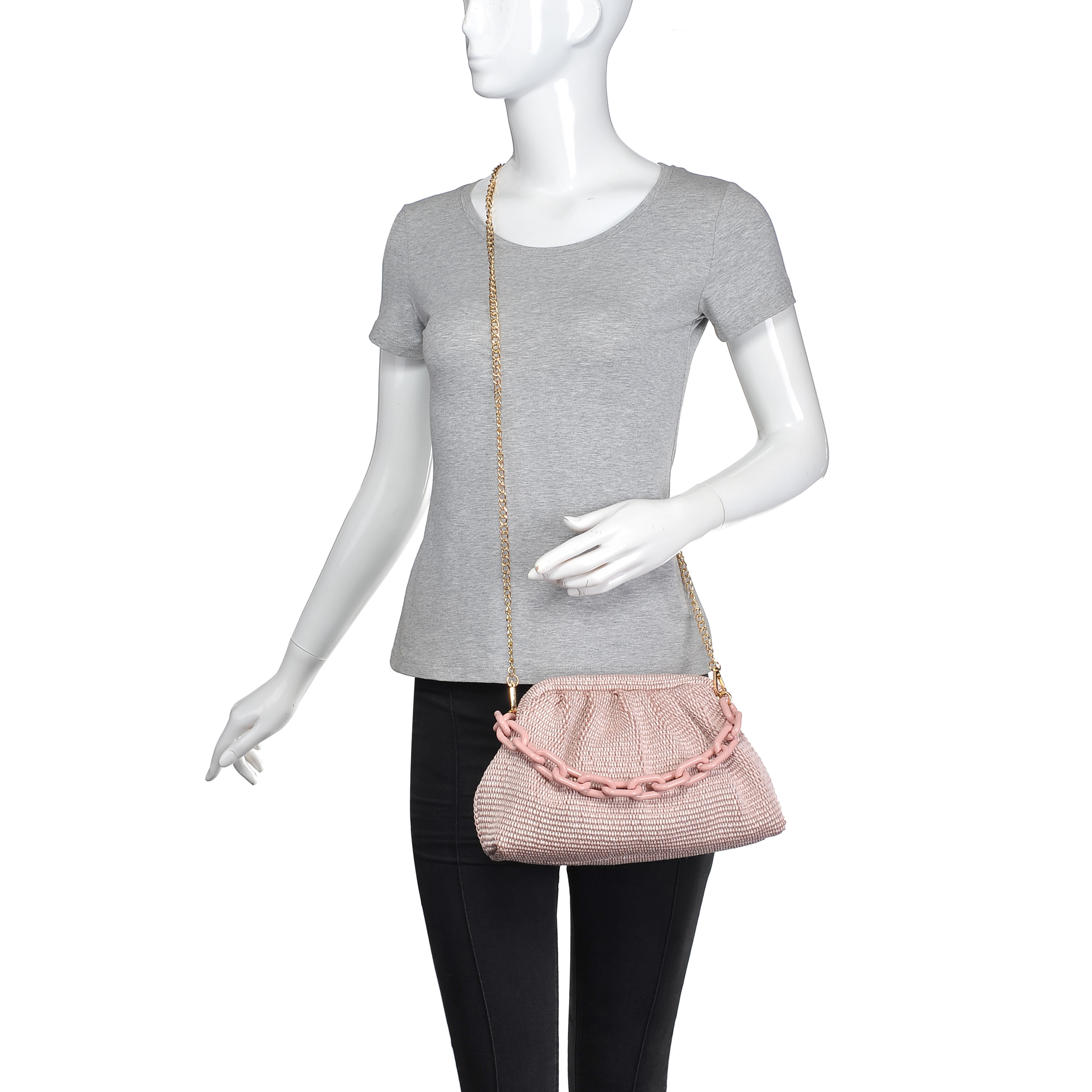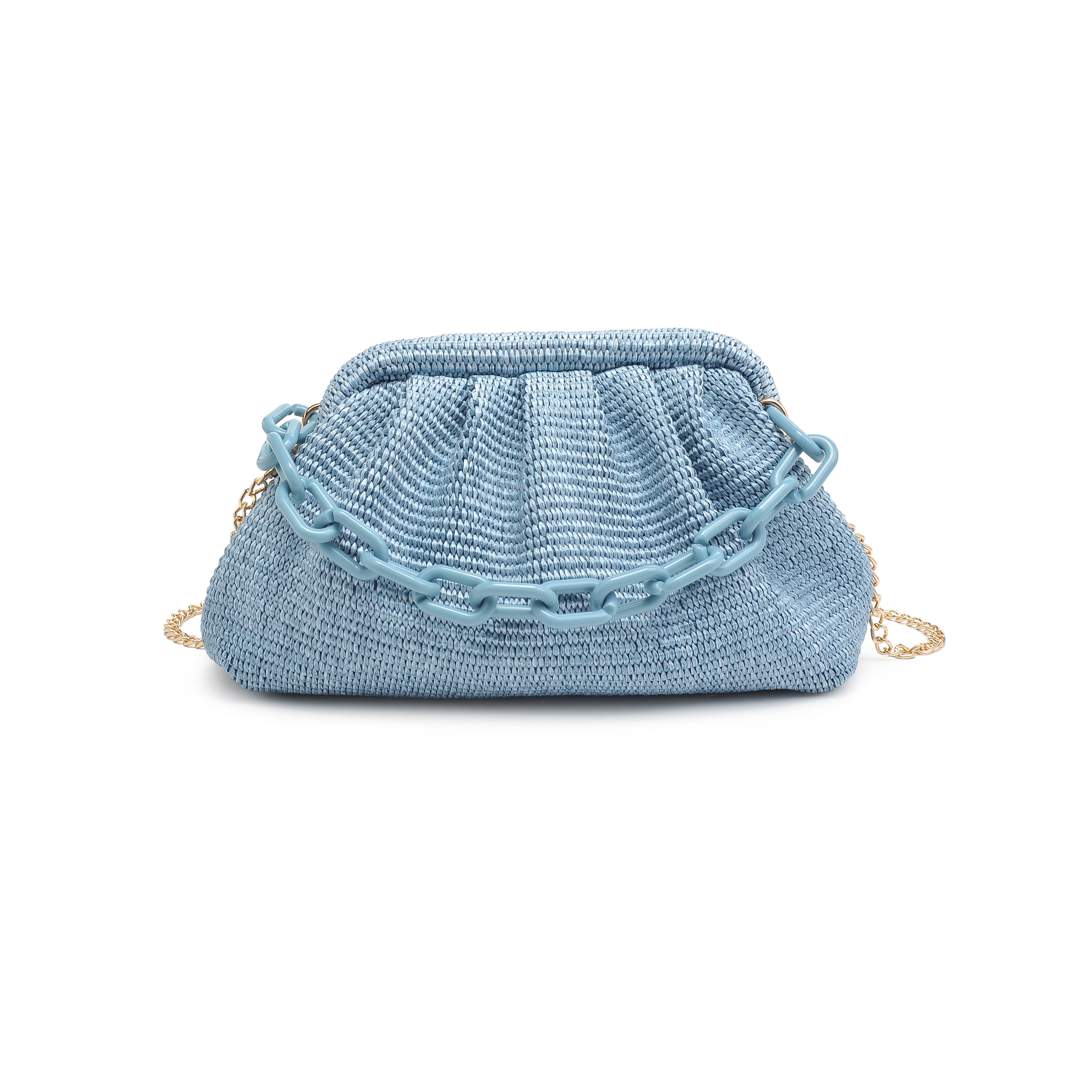 细节描述:Woven straw all-over, matching chain handle, gold hardwareI.