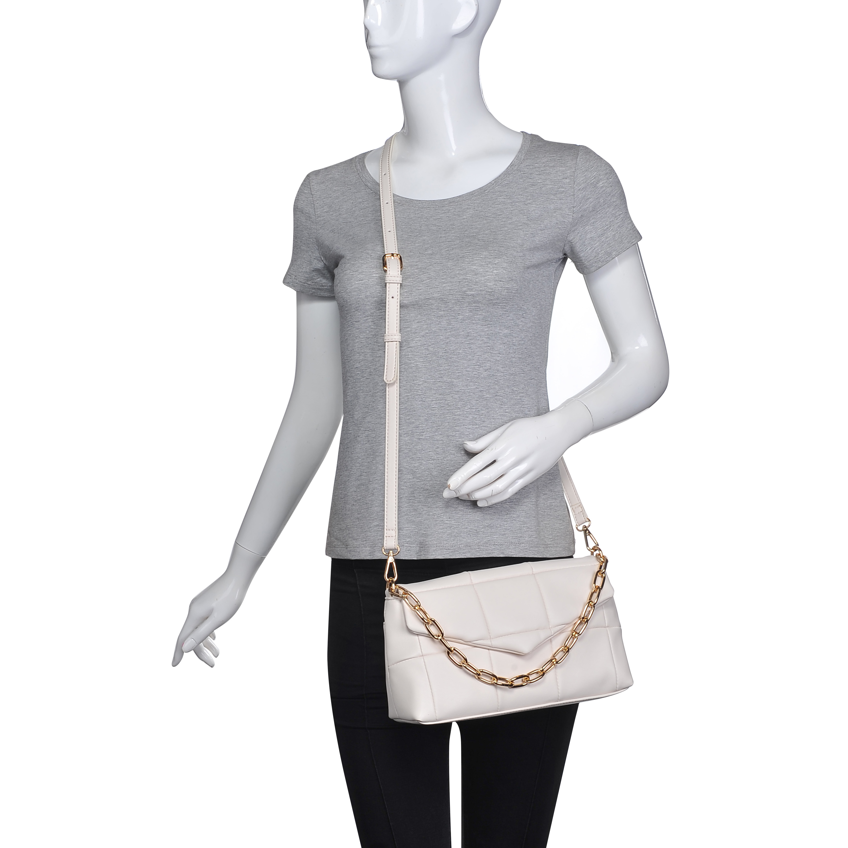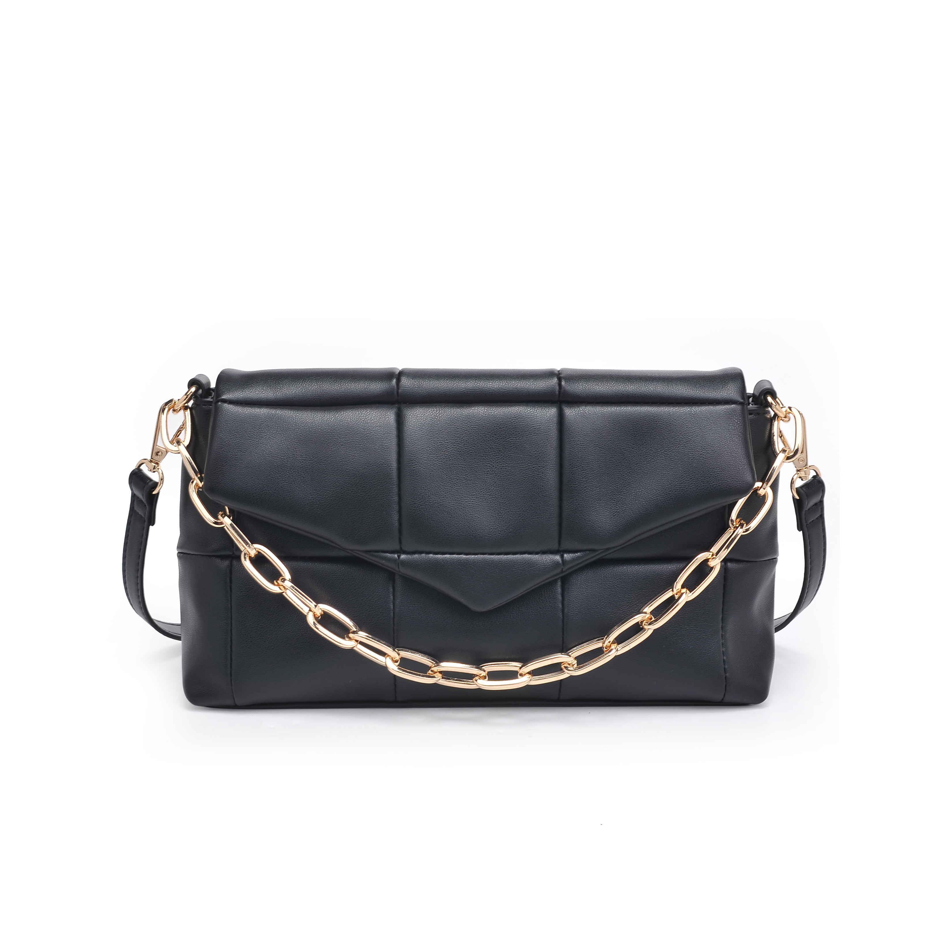 细节描述:Vegan leather all-over, gold hardware,PU Adjustable Strap.