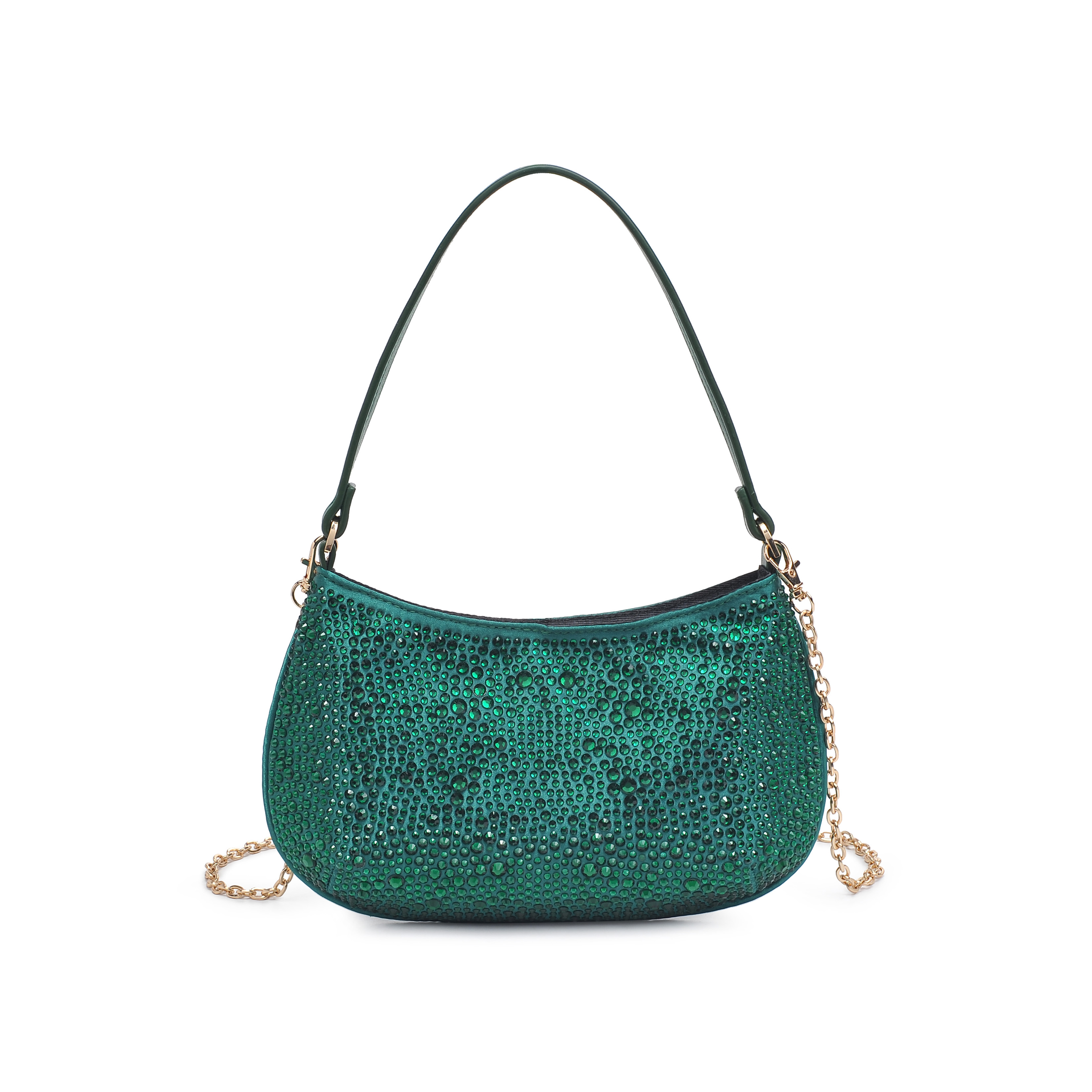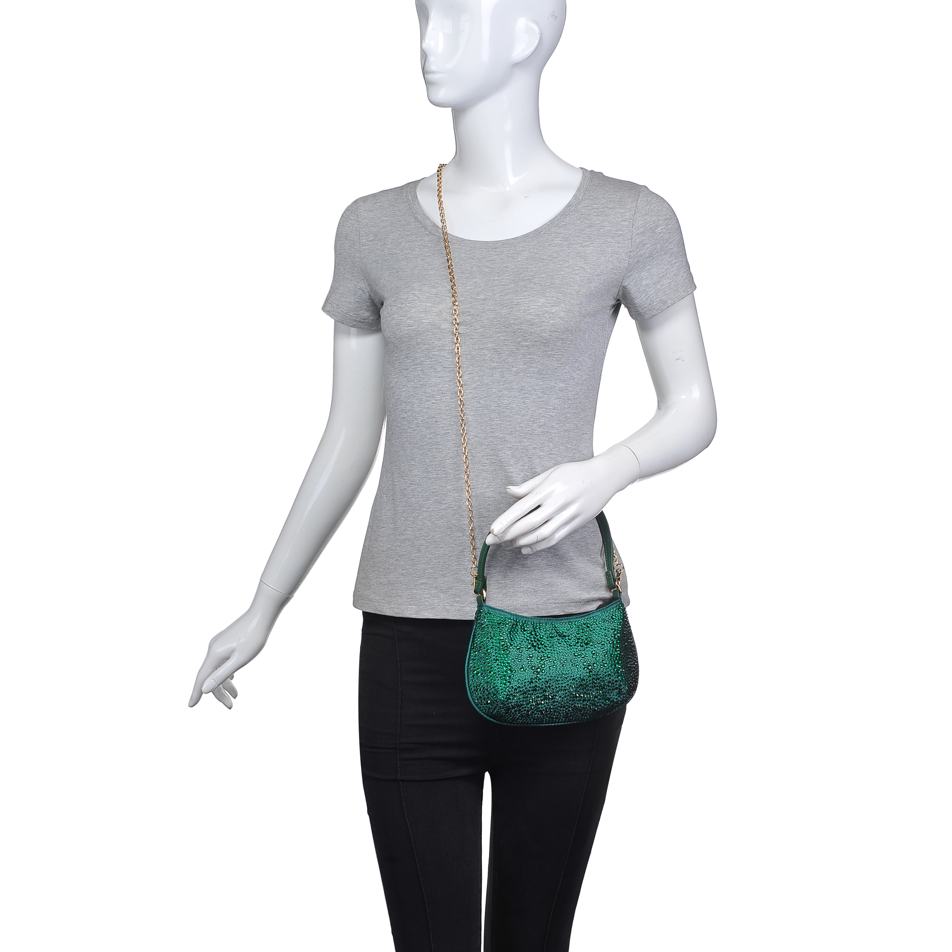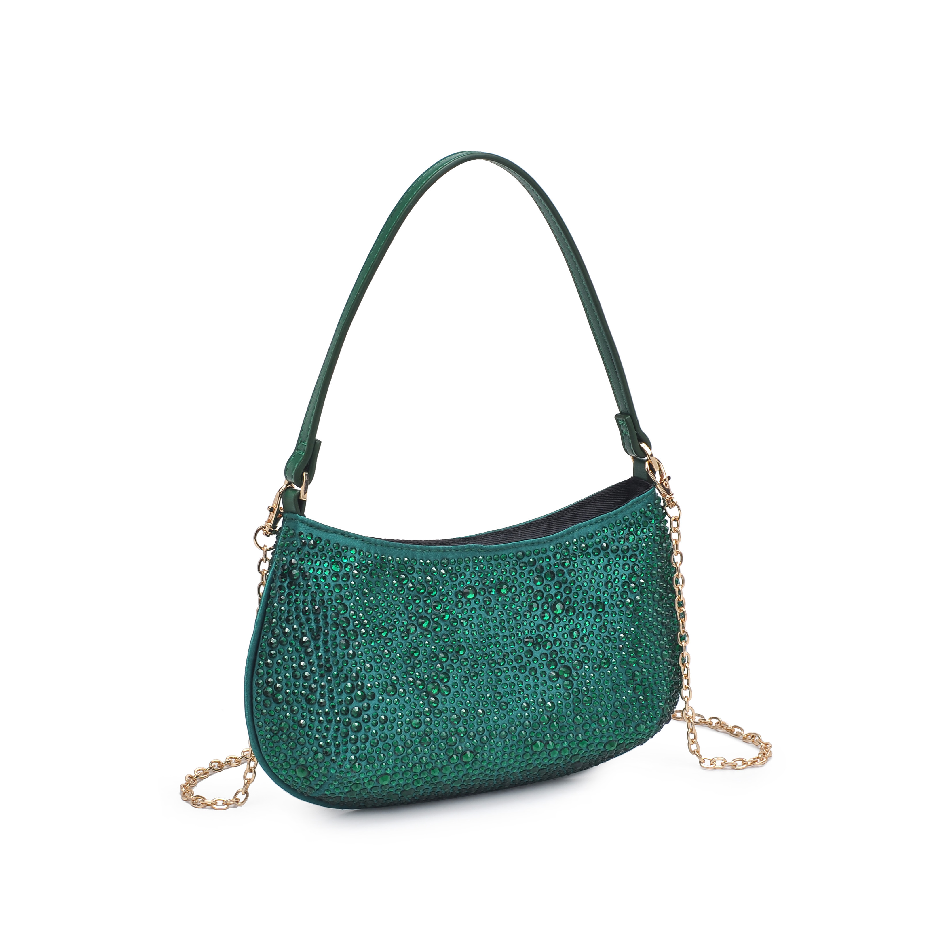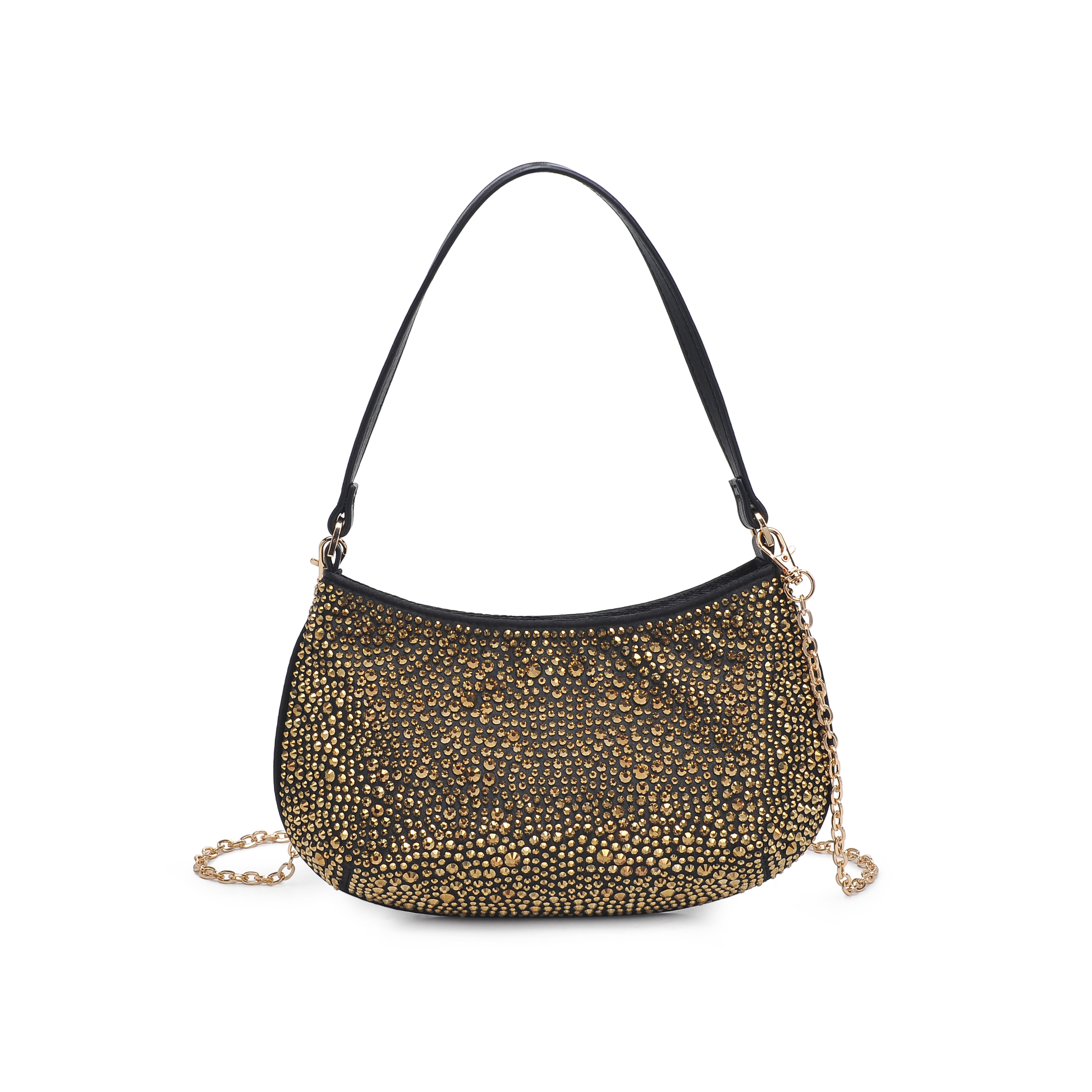 细节描述:Rhinestone Details, Gold Hardware,Lightweight and compact,Detachable metal Chain.