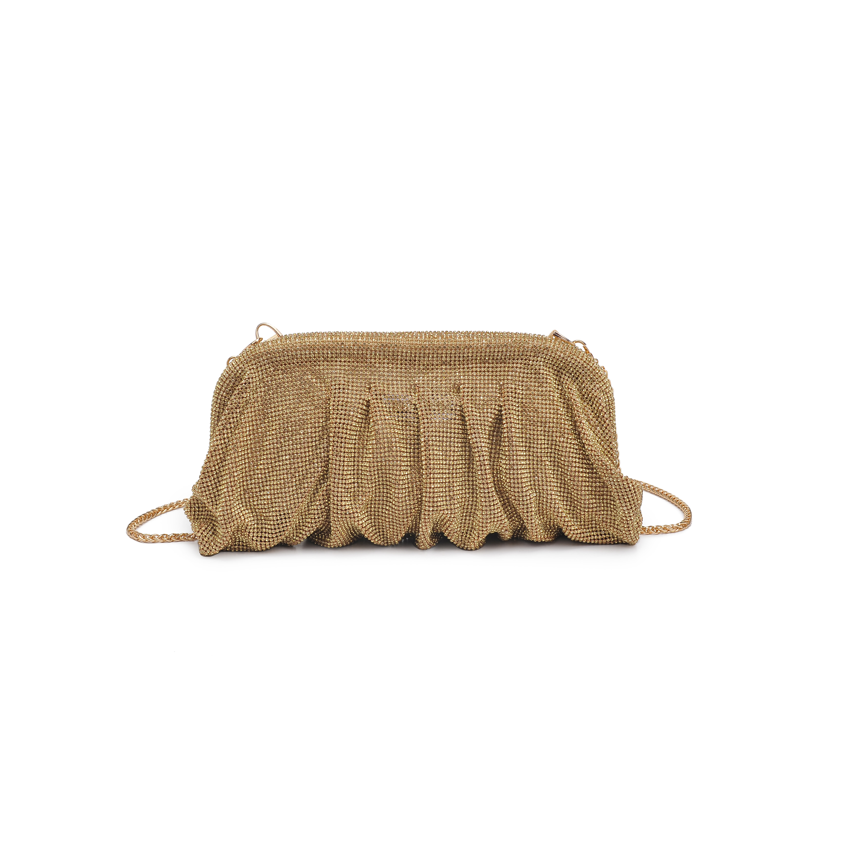 细节描述:Rhinestone all-over, silver and gold hardware,Detachable metal Chain.