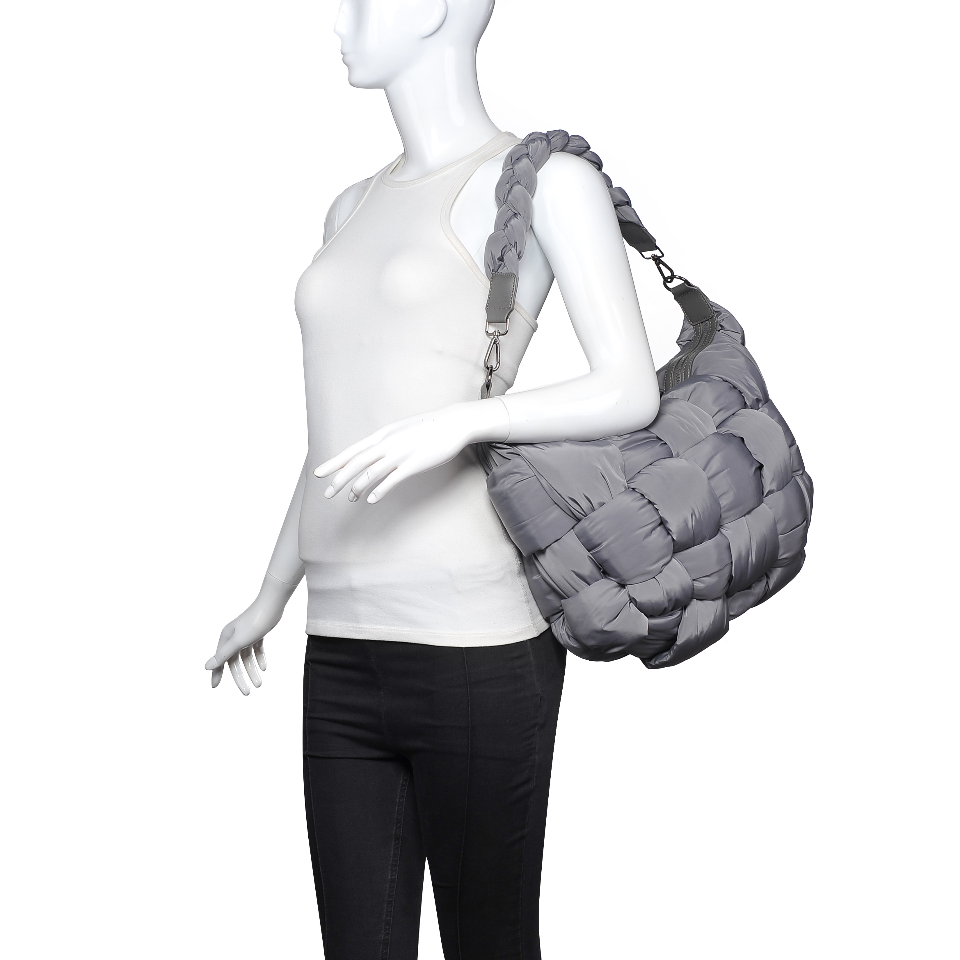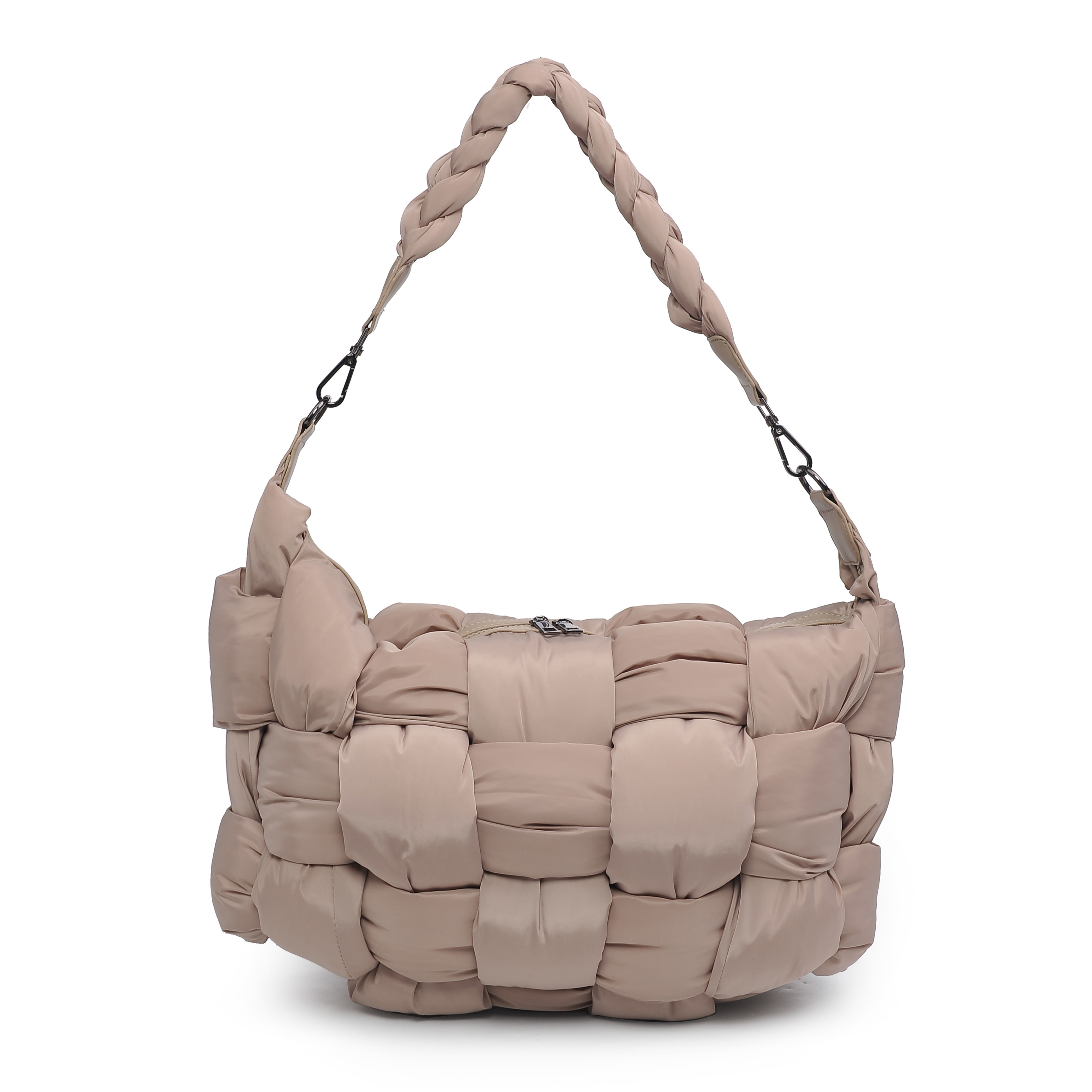 细节描述:Woven shoulder bag with fried dough twist handle.Very light and suitable for sports and outdoor