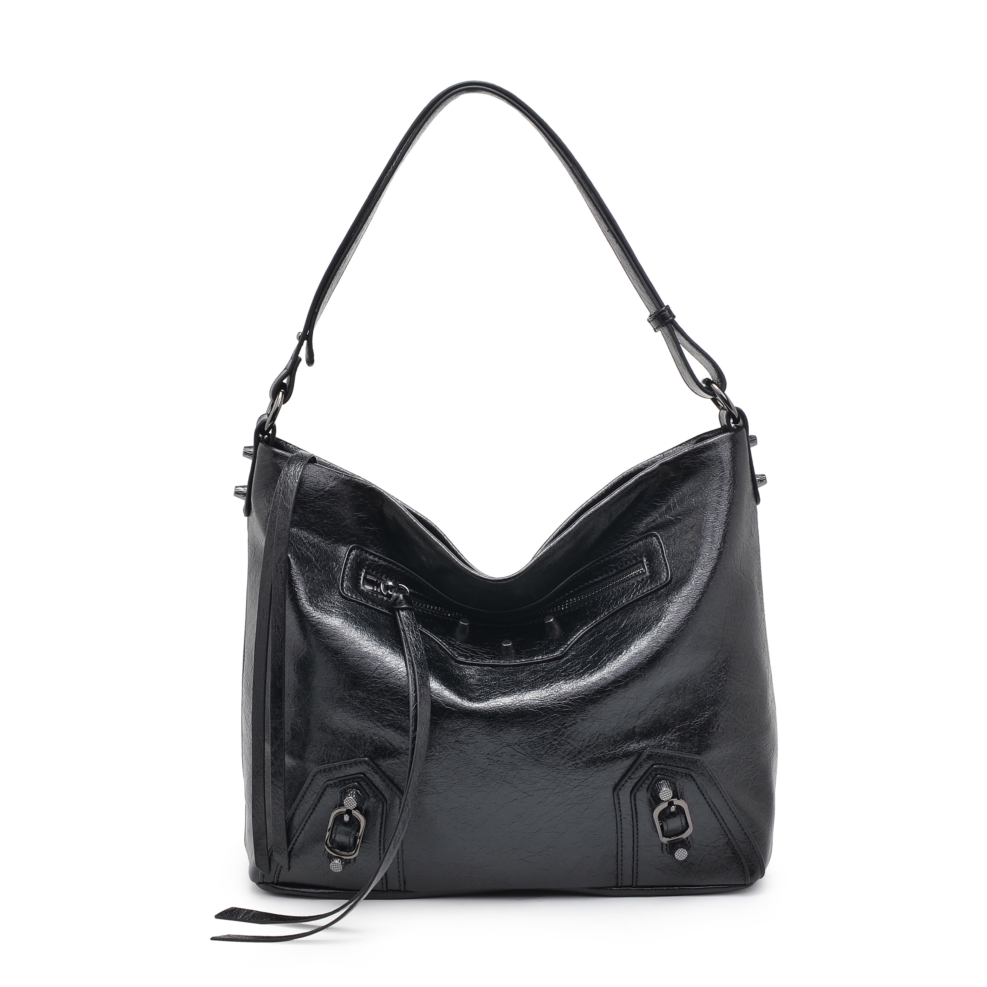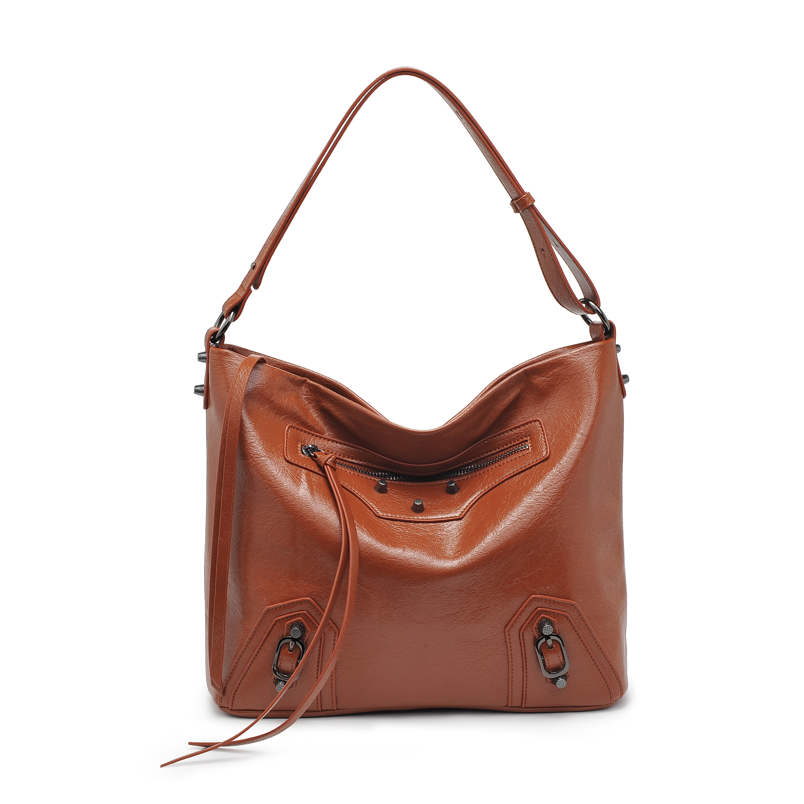 细节描述:刪It is the perfect friend for any fashionable lady on the go. This hobo style bag is sleek, stylish and vegan-friendly, made of high quality vegan leather with a distinctive black hue and metal stud details. The zipper closure is easy to open and close, while the handle allows you to easily sling it over your shoulder. Its leather exterior has a smooth feel that complements its classic look, while its interior fabric lining and multiple pockets will make sure belongings are kept safetalk about looking good AND being organized! Traveling in style can often be a challenge...It checks all the right boxes: comfortable, functional and of course, stylish. So don't waitjoin the party with this!