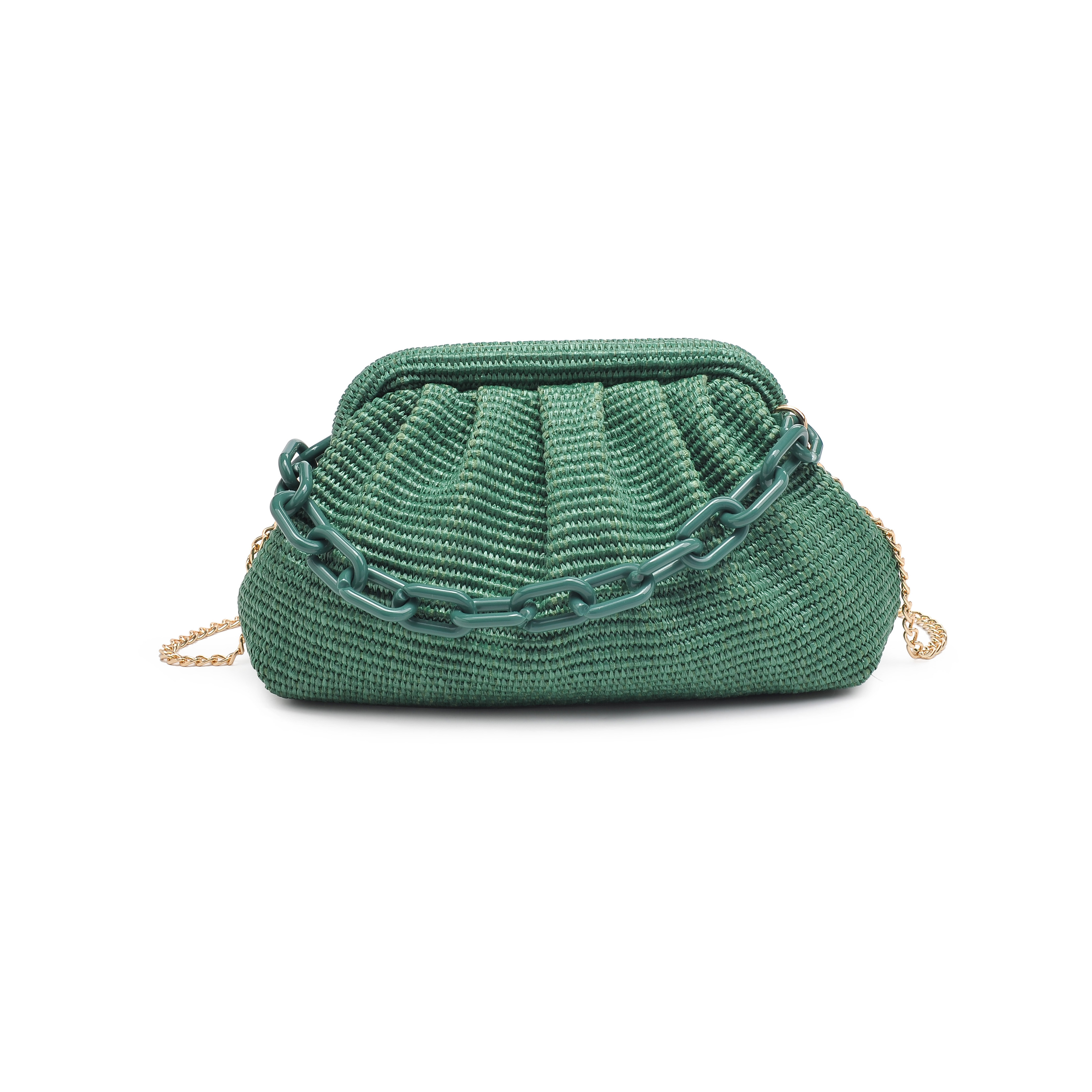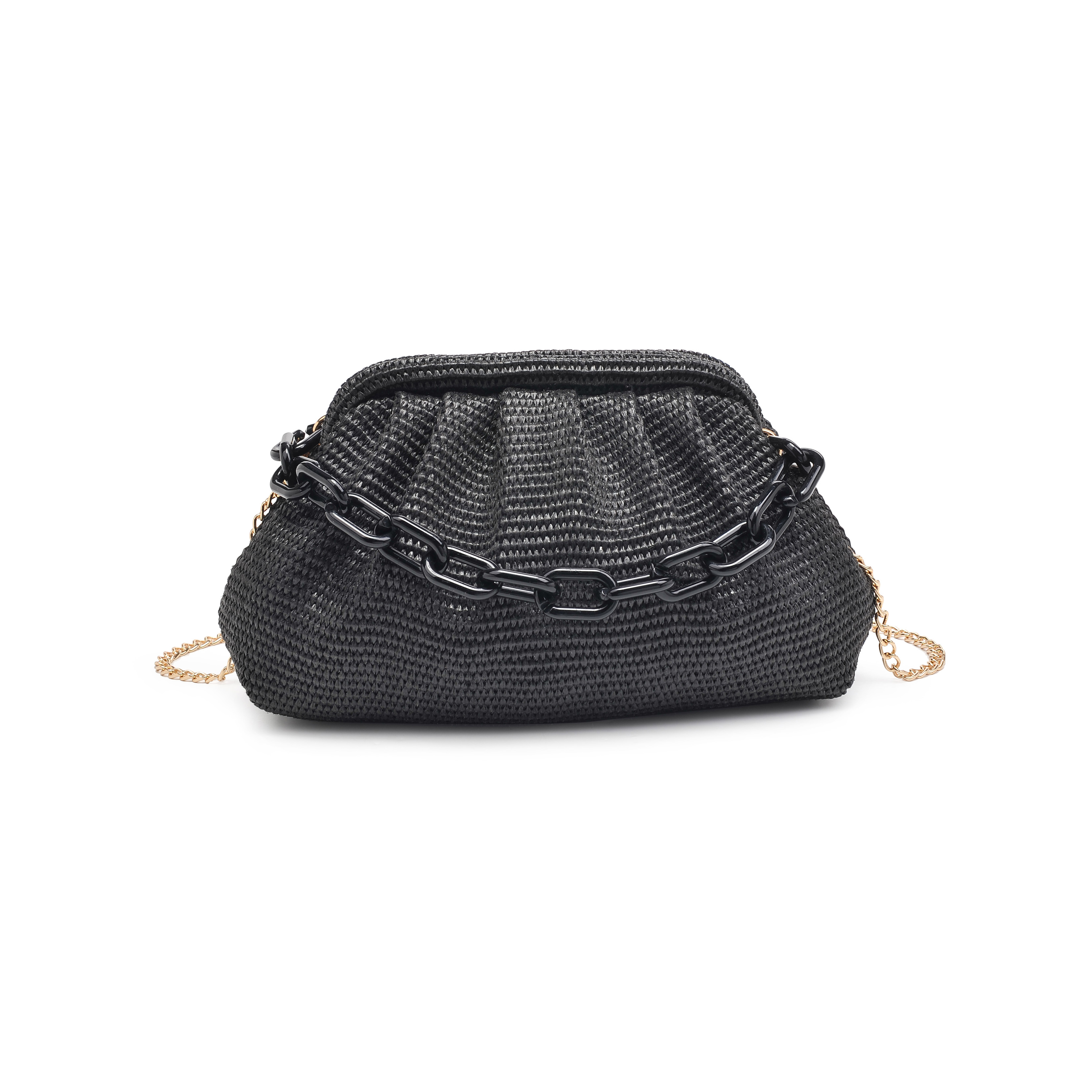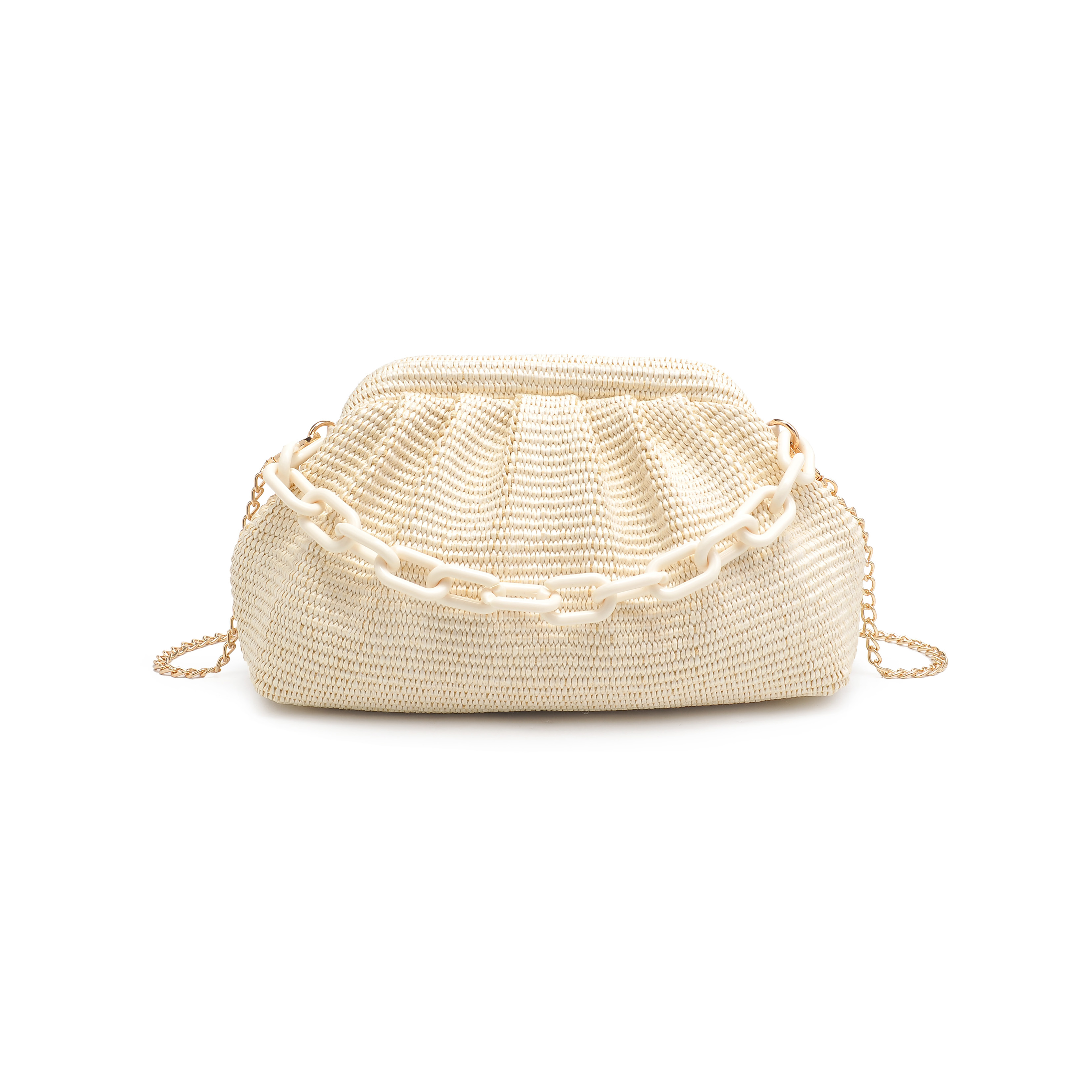 细节描述:Woven straw all-over, matching chain handle, gold hardwareI.